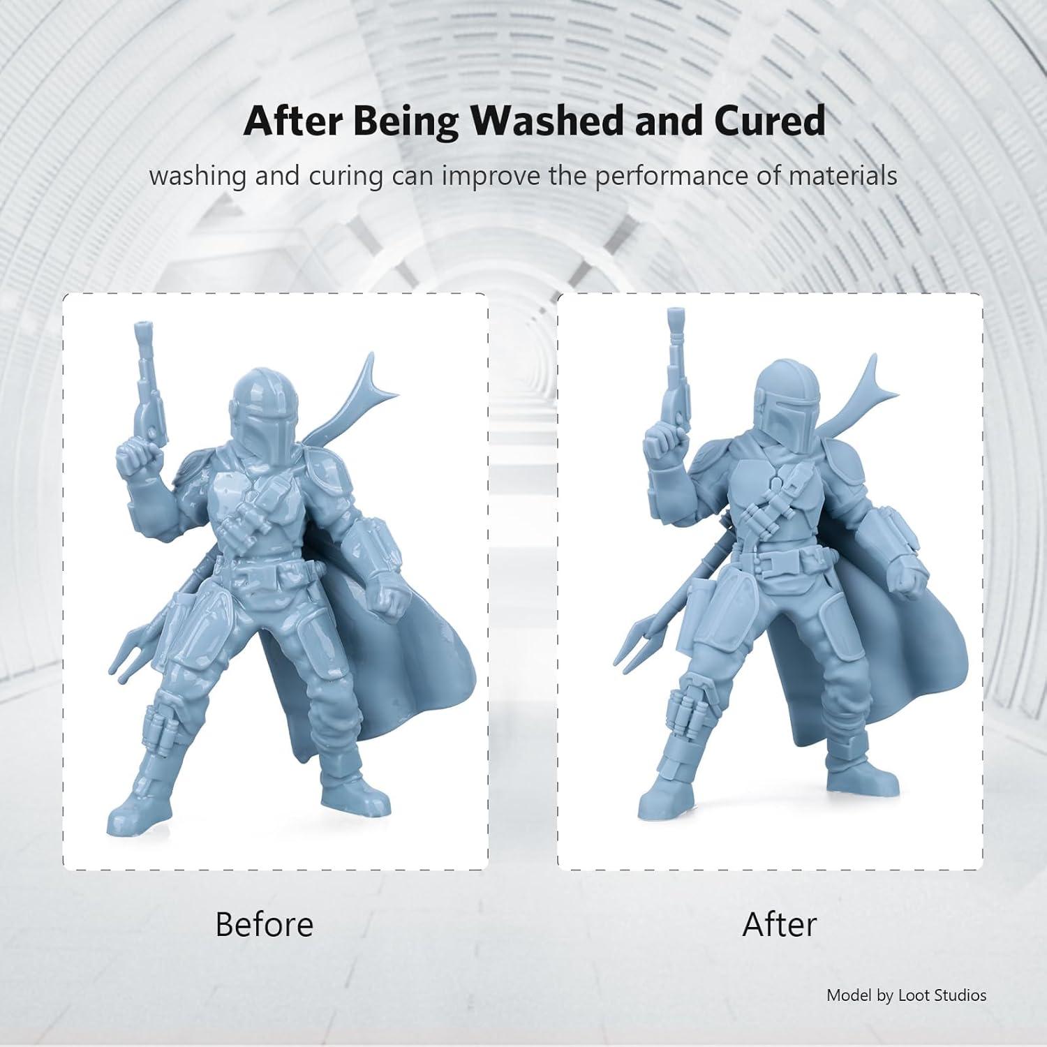 【Intelligent Curing and Washing】The front TFT screen can directly display the setting time and remaining time, and the operation is simple and intuitive. With built-in 16 pcs of 405nm UV LED and a 360-degree rotating turntable, you can uniformly cure the model.