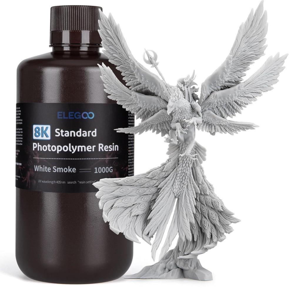 ELEGOO Upgraded 8K Standard Photopolymer 3D Printer Resin 405nm UV-Curing Resin Best for 8K/12K/14K Saturn MSLA DLP LCD 3D Printing Space Grey 1000G(White 2.0)