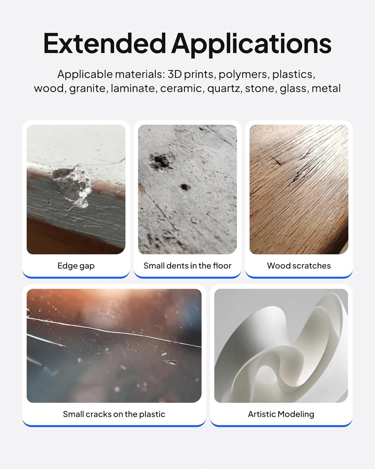 Versatile applications: Ideal for repairing 3d printed models, adding Texture, filling hairline cracks/gaps/holes, creating cast effect on models etc.